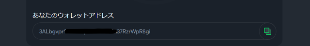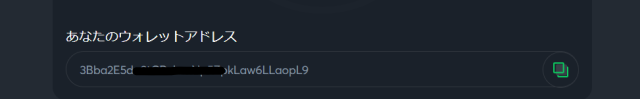 『あなたのウォレットアドレス』の下に記載されている英数字をコピーしてください。ウォレットアドレスは、ビットコインの送付元サイトで使用します。