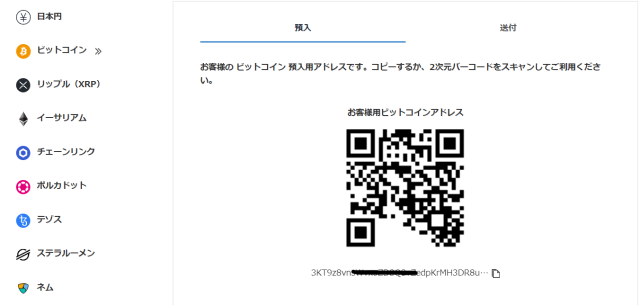- ビットコインの入出金はウォレットアドレスの入力のみ