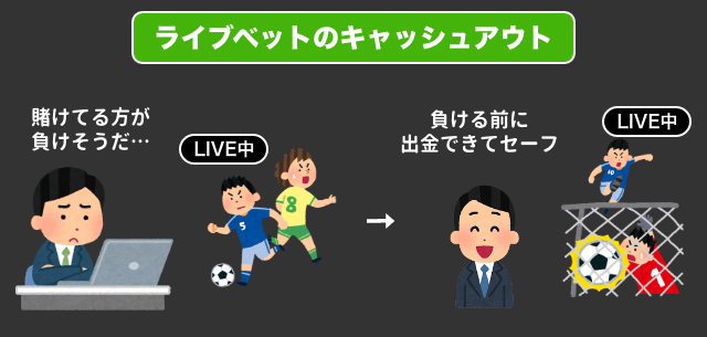 キャッシュアウトとは、試合結果が確定する前に利益の一部を手元に還元する機能です。