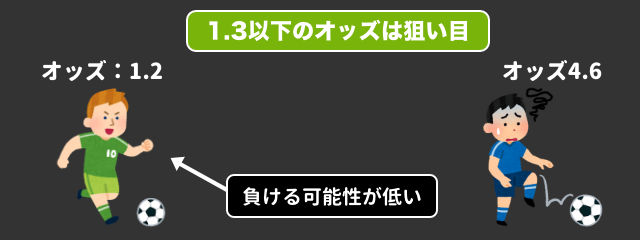 そのため、1.3倍以下のオッズがついた試合は強いチームの動向などを調べ、勝ちや引き分けにベットするのが、狙い目であると言えるでしょう。