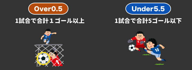 なお、オッズの傾向としてはUnder5.5よりもOver0.5の方が高めになりやすく、1点でも得点が入れば的中となるため、プレイヤーに有利なオッズはOver0.5と覚えておきましょう。