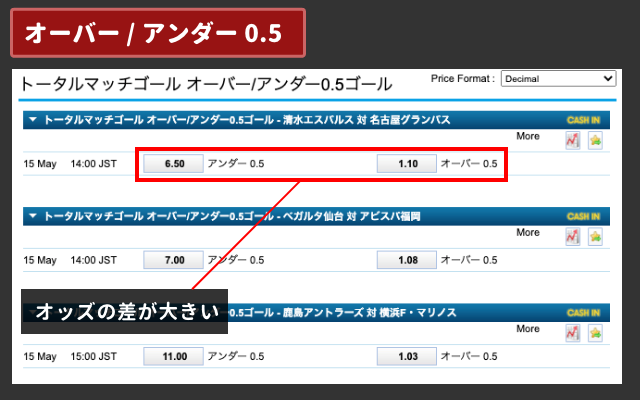 最後に、ブックメーカーの中でもユニークなオーバー/ アンダー0.5のオッズを紹介します。