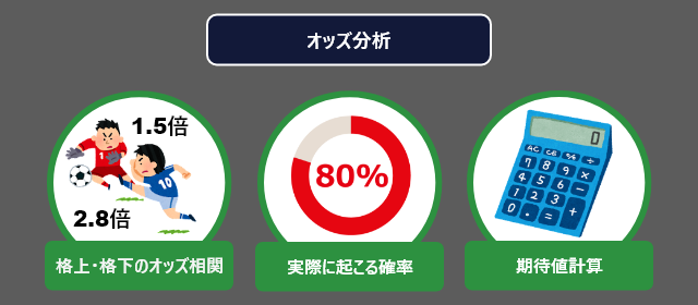 - 期待値計算をすればどのオッズが一番稼げる見込みが高いか判断できる