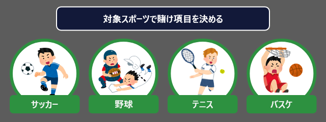 対象スポーツを決めたら、次はどの賭け項目にベットするか検討していきましょう。