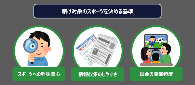 - ベットするスポーツを選ぶ際は興味関心や情報の収集しやすさに注目すること