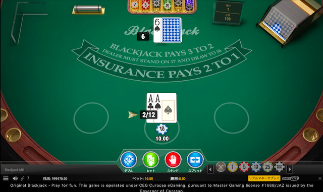 「A」が2枚の場合、「2」と数えてヒットするよりもスプリットして両方にブラックジャックが出るのを期待できます。