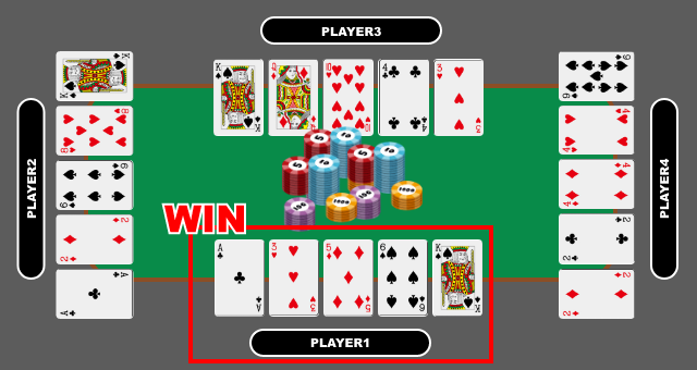 一般的なポーカーでは、参加者全員に5枚のカードを配り、5枚のカードで作られる役の強さによって勝敗を決めます。