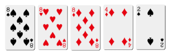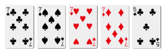 ![]() | 【フォーカード】 同じ数字のカードが4枚揃うと完成する。別名『クワッズ』 | 0.024% |