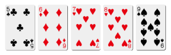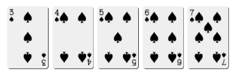 ![]() | 【ストレートフラッシュ】 ストレートとフラッシュが同時に完成する。数字に指定はありません。 | 0.00139% |