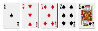![]() | 【ノーハンド(ハイカード)】 一番弱い役。 どの役も完成しない。 | 50.00% |