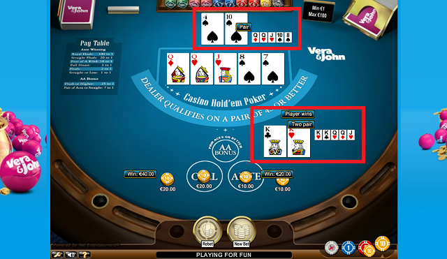 ツーペアの配当は1倍で、AA BONUSは賭け金の7倍を獲得できます。