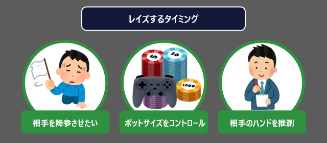 ポーカー勝負でレイズするタイミングは主に以下3つの状況です。