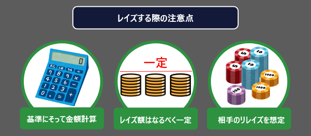 レイズするタイミングを理解したところで、もう一つ掘り下げて以下3つの注意点も確認しておきましょう。