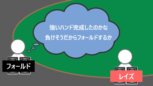 - レイズで強いハンドだと思わせられれば相手をフォールドさせられる。
