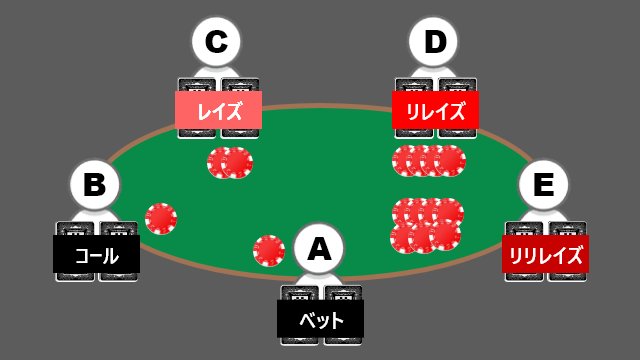 リリレイズとは、1ラウンド中で行われる3回目のレイズを指します。