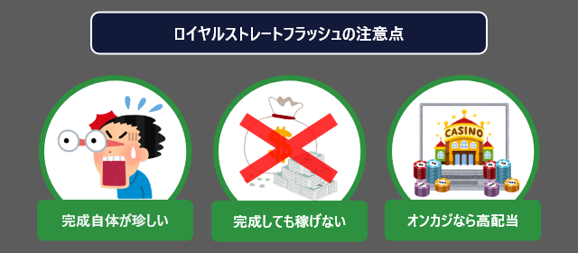 最後に実戦する前に知っておきたいロイヤルストレートフラッシュの注意点を3つまとめました。