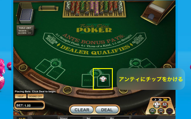 それでは早速、スリーカードポーカーの流れを見ていきましょう。