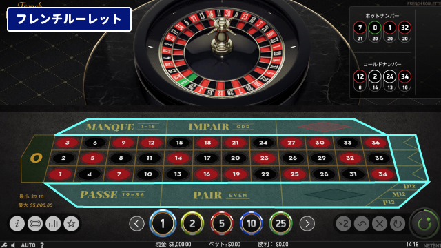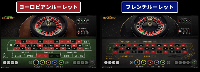 フレンチルーレットが通常のルーレットとテーブルが違います。