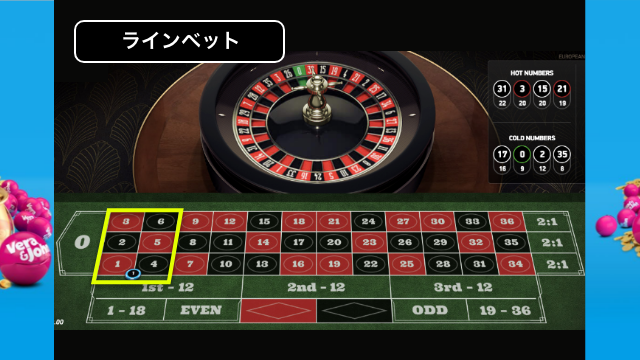 - 組み合わせ:ストレートベット+コーナーベット+スプリットベット