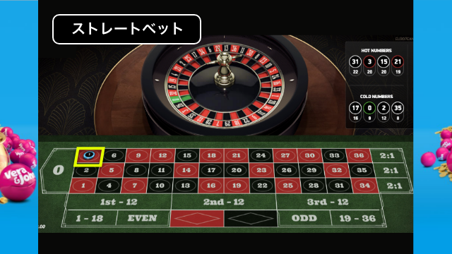 ストレートベットだけで当てるのは奇跡に近いですね。資金が残り1ドルになった時に運試しで賭けてみるものいいかもしれません。