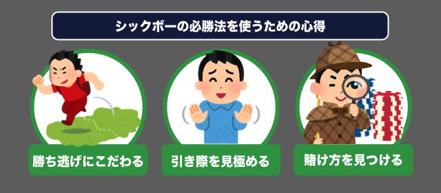 ここまで説明したシックボーの必勝法をより効果的に使えるようになるためには、以下の心構えを持ってゲームに挑むのが重要です。