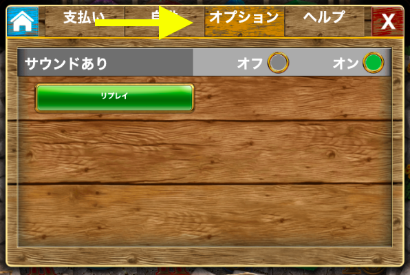 オートスピンの設定上部にある『オプション』タブをクリックすると、サウンドのあり・なしを設定することも可能です。