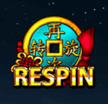 リスピンはその名前の通り、『スピンを再度行う』演出です。トリガーとなるシンボルは中国のお金がモチーフで、通常時にリスピンが揃う確率は1/25となっています。
