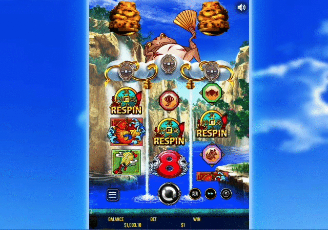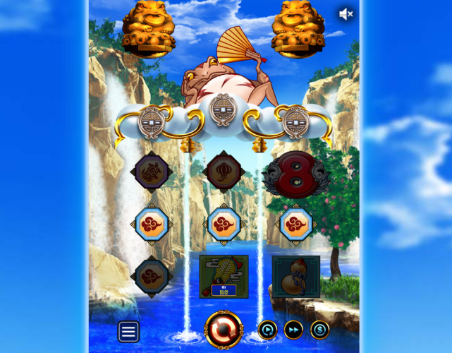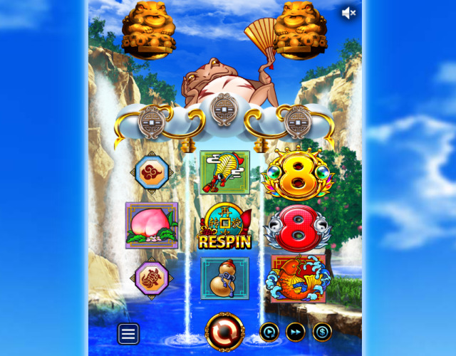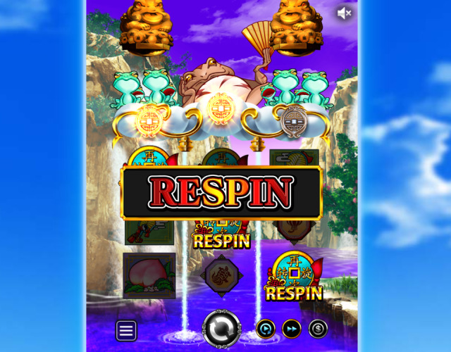 中華風のイラストと音楽に、カエルのキャラクターがモチーフとなっているユニークなスロットです。パチスロを意識したフリースピンや選択を迫られるボーナスモードなどの当たり演出が特徴的です。