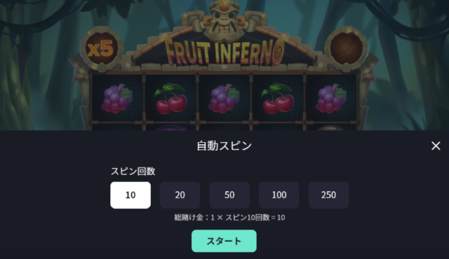 フルーツ・インフェルノでは、オートスピンも設定できます。