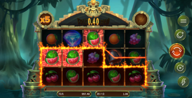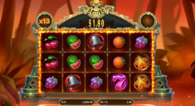 フルーツ・インフェルノ(Fruit Inferno)は、ジャングルの中にある古代遺跡がモチーフになっているスロットで、ベラジョンカジノとインターカジノが独占配信している機種です。