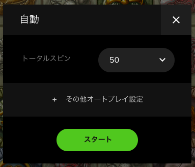 『自動』ボタンをクリックするとオートスピンに必要な設定が行えます。設定が完了したら『スタート』ボタンを押せばスピンが開始されます。