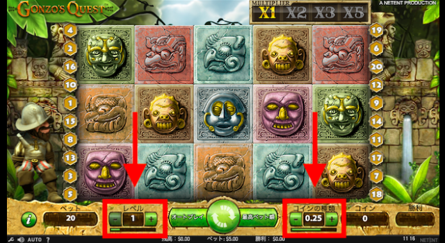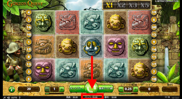 まず、ゴンゾーズクエストを起動したら好みのベット額を設定します。