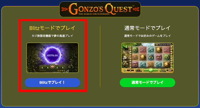 Blitzモードはカジ旅限定機能となっていて、通常の6倍の速さでビデオスロットをプレイできます。いつでも手軽に時短プレイが可能なので是非利用してみてください。