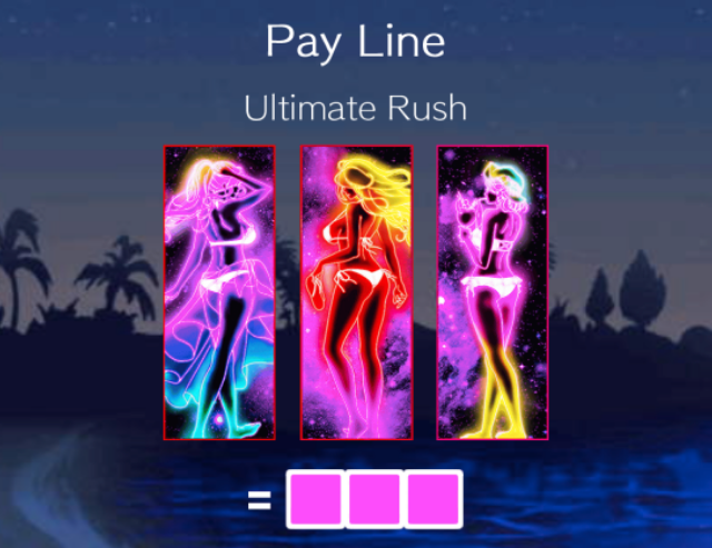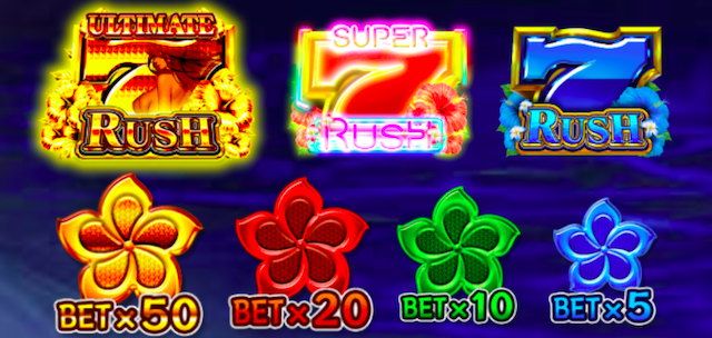 ハワイアンドリーム最大のフィーチャーボーナスである、アルティメットラッシュは金色の『7』シンボルが揃うと突入するフリースピンです。