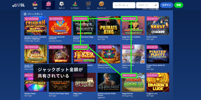 これらは全てジャックポットスロットとなっていて、メガムーラと同額のジャックポットが共有されています。メガムーラとは趣向の違ったスロットになっていますので、是非プレイしてみてください。
