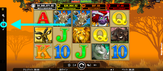 なお、メガムーラの各配当は画面左端の『i』アイコンから確認できます。