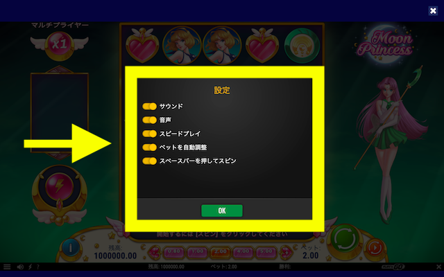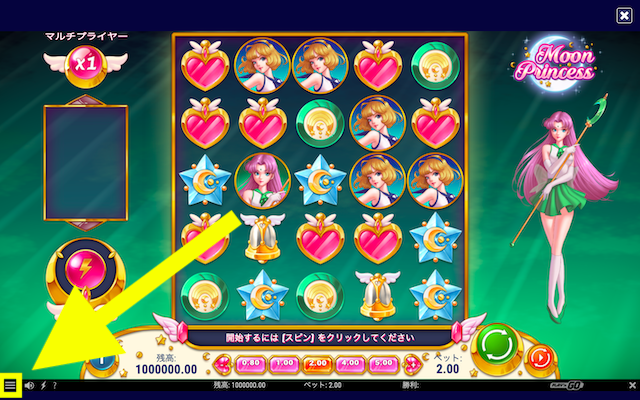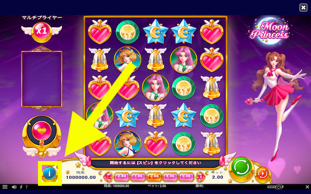 ここからはムーンプリンセスの実際のプレイ画面を交えながら遊び方を解説していきます。