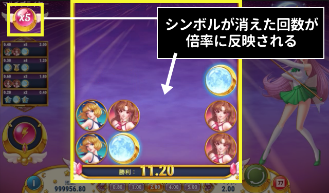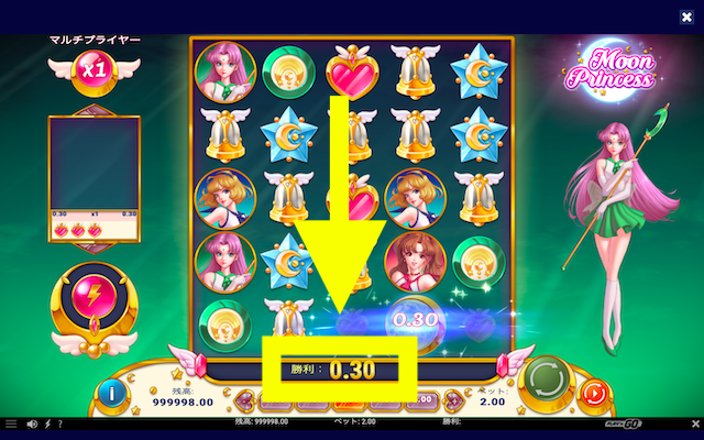 マルチプライヤーとは、配当成立した後の賞金額を何倍にも乗算してくれる機能のことで、ムーンプリンセスでは最大20倍まで増加します。