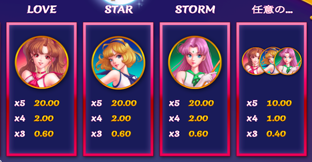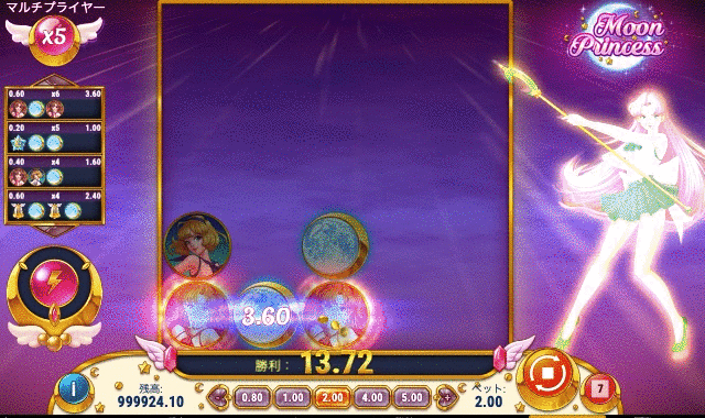 - ムーンプリンセス(Moon Princess)は3人の美少女戦士が配当成立のサポートをしてくれる