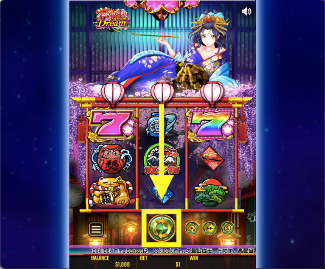 なお、3回目の赤色リスピン時はフリースピンの花魁ラッシュか、DokiDokiTimeが確定するので高額配当が期待できます。