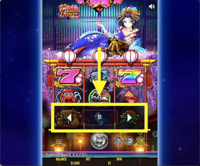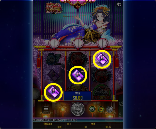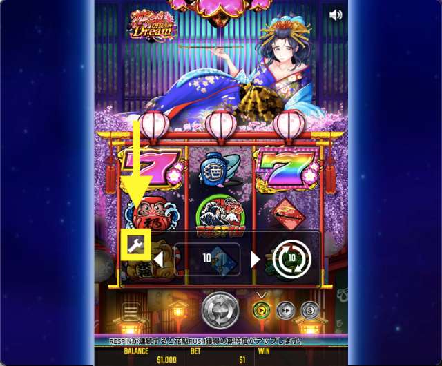 - 花魁ドリーム(oiran dream)は、リスピン・フリースピンで少しずつ着物が肌けていく
