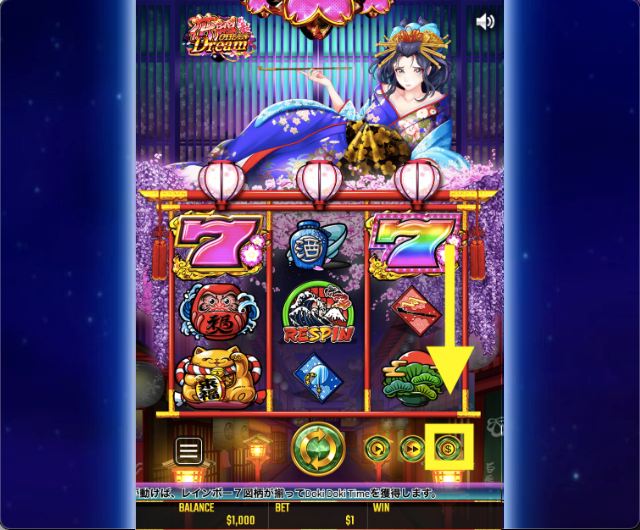 まず花魁ドリームを起動したら、画面右下の『$』アイコンから好みのベット額を設定しましょう。