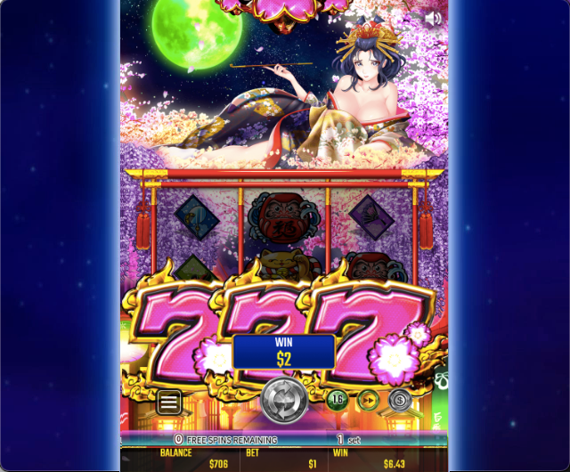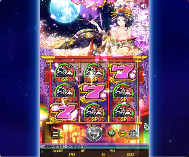 この花魁にはキャラクターボイスや目の瞬きなど、アニメーションも発生するため、スピン中も目が離せません。