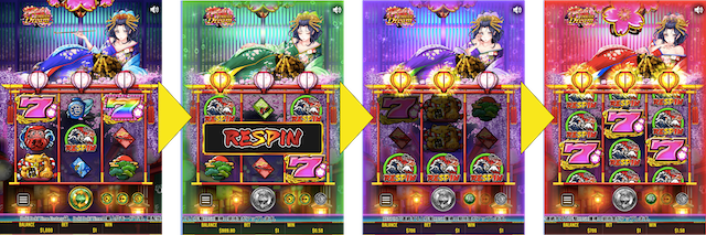 そして衣装替え完了と同時に画面中央に『RESPIN』という文字が表示され、ゲーム全体が花魁の衣装と同じカラーのネオンに包まれます。