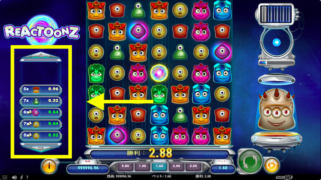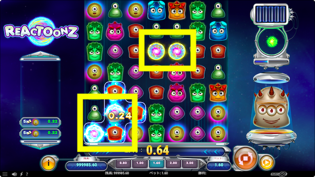 リアクトゥーンズ(Reactoonz)の当たり演出