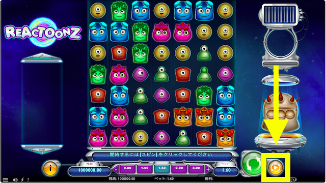 設定が済んだら、ゲーム画面右下にあるスピンボタンを押してゲーム開始です。