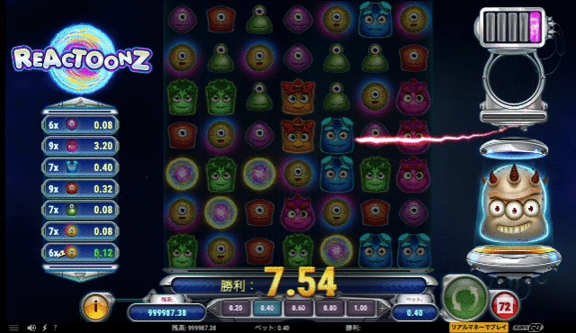 リアクトゥーンズ(Reactoonz)は、可愛いモンスターと近未来的な演出が特徴的なスロットで、2017年にPlay’nGo社によってリリースされました。