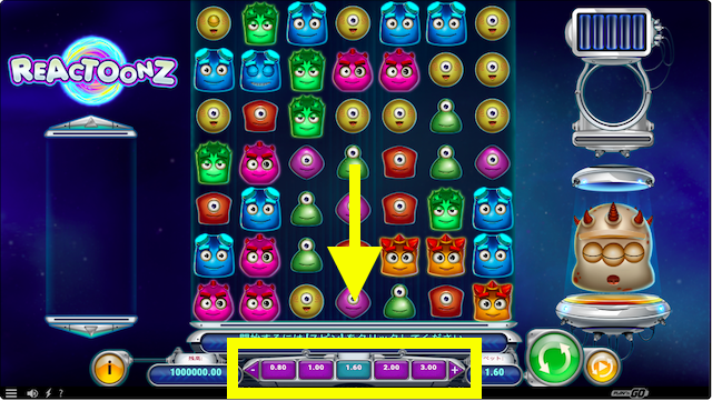 まずリアクトゥーンズを起動したら、画面最下部から好みのベット額を設定しましょう。