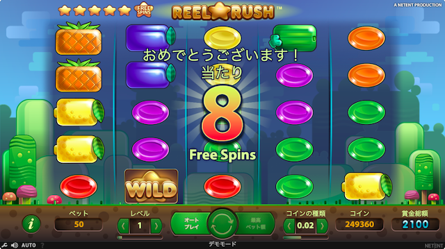 このスロットは、数多くのオンラインカジノで配信されていて、無料プレイができるサイトも多い特徴なので、まずは気軽に無料プレイでリール・ラッシュの魅力を体験してみてください。