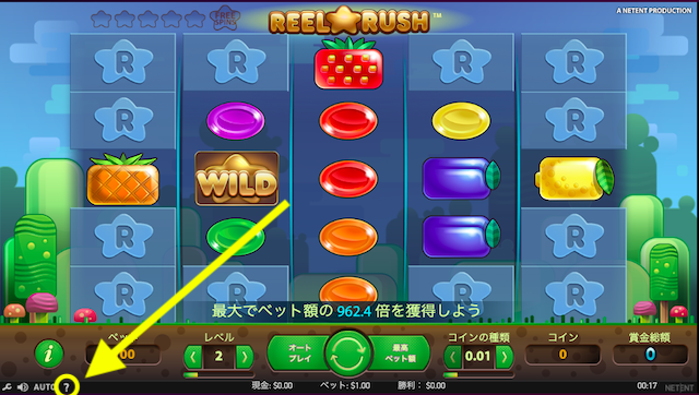 リール・ラッシュの還元率は、プレイ画面右下にある『?』アイコンから確認できます。